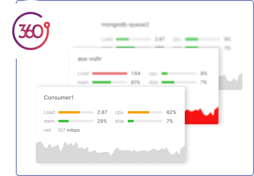 Les eines i processos de monitorització del rendiment comproven el bon funcionament del sistema mitjançant la supervisió dels recursos del sistema com l'ús de la CPU, el consum de memòria, l'ús del disc, el rendiment d'entrada/sortida (E/S) i el temps d'activitat de la xarxa. 360 Monitorització fa un seguiment de totes aquestes mètriques per assegurar que tot funciona sense problemes.