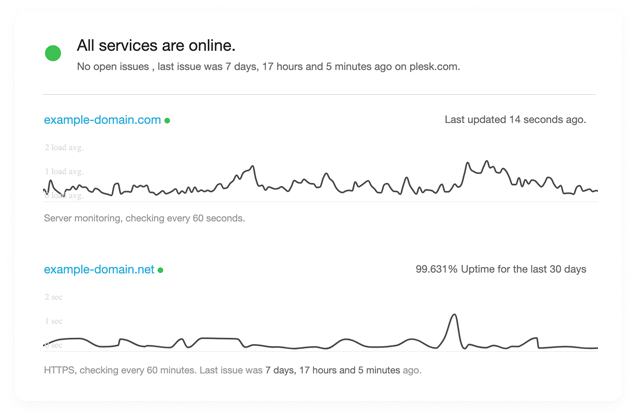 El monitoratge del servidor executa exploracions regulars i fa un seguiment de la salut del vostre servidor, incloent la CPU, els temps de càrrega, les estadístiques de xarxa, la memòria, l'ús del disc i molt més per ajudar-vos a trobar i resoldre problemes ràpidament.